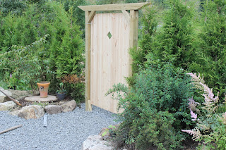 Jeg kom plutselig på ideen om en dør i tujahekken,da jeg luftet den noe"sprø"ideen for mannen,var han helt med med en gang,hehe,null problem;)