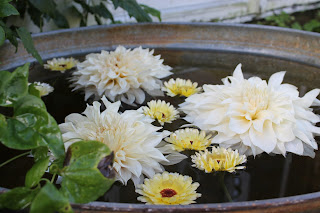 Jeg liker å så sommerblomster på friland,å i år prøvde jeg meg på en sammenstning med ringblomst "snow princess"og salvia horminum"white mist",å må si at jeg likte dem begge veldig godt,så må nok sanke litt frø fra dem å prøve igjen neste år:)